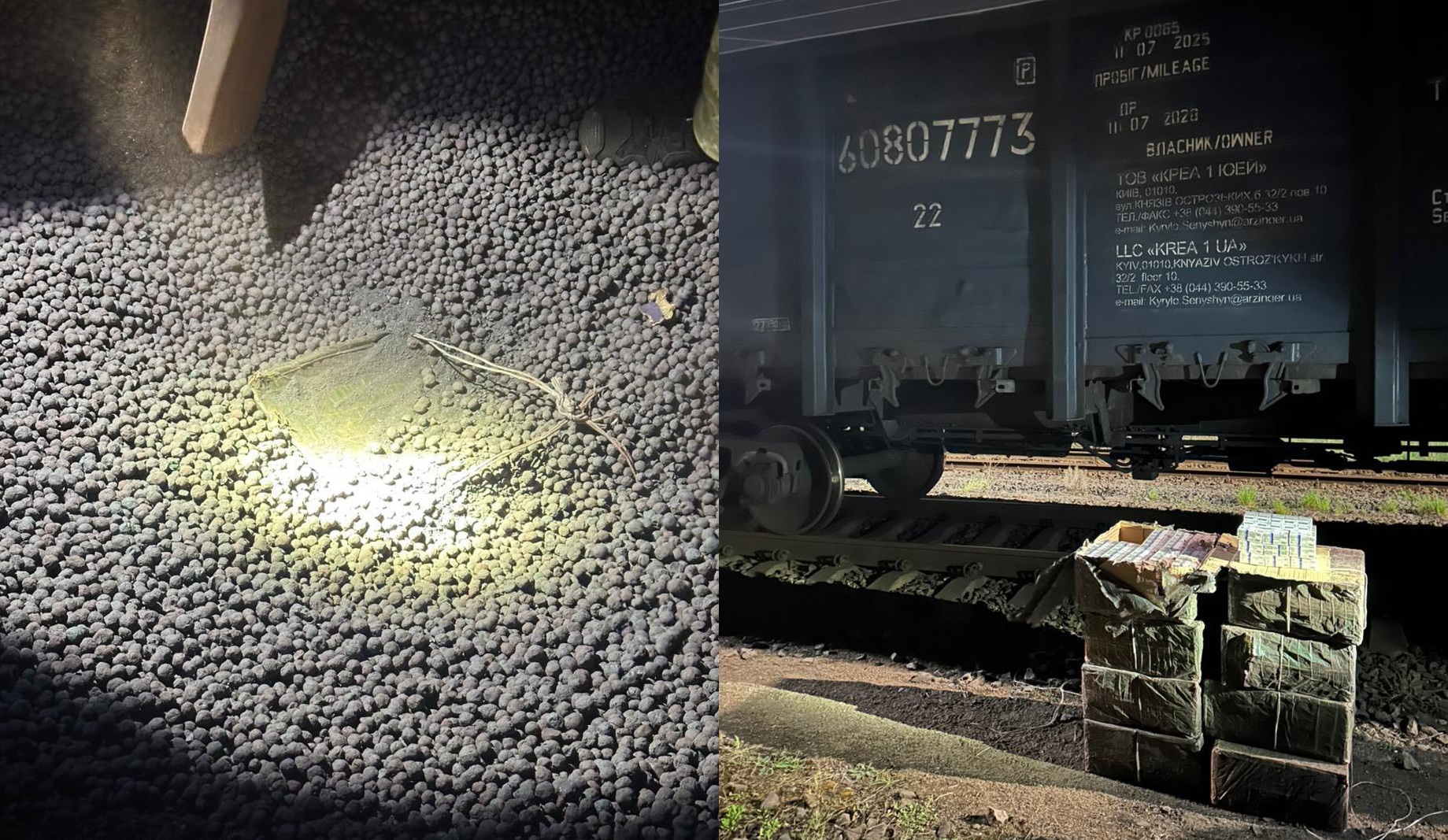 Для маскування контабандних тютюнових виробів ділки заздалегідь загорнули їх у чорну поліетиленову плівку, закопавши глибоко під шаром окатишів.