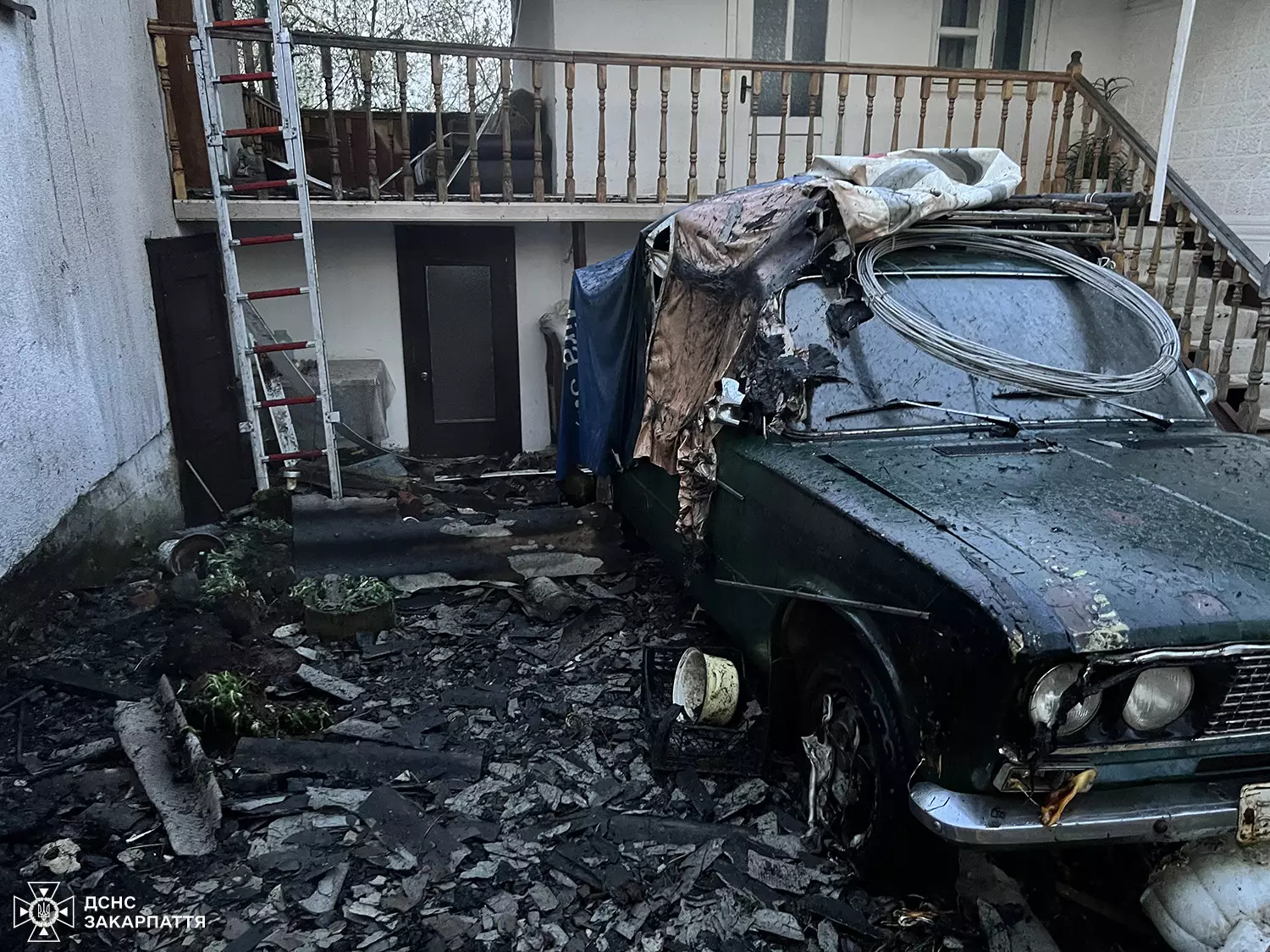 Полум’я знищило 4 тонни сіна та домашнє майно, пошкодило дах, перекриття споруди, а також автомобіль, припаркований у дворі. Проте вогнеборцям вдалося запобігти перекиданню вогню на впритул розташований житловий будинок.