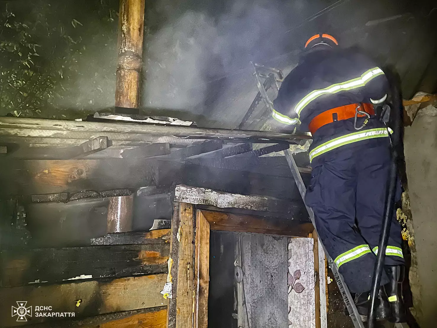 О 19:33 пожежу було локалізовано, а о 19:40 ліквідовано повністю на площі 10 кв.м. Унаслідок пожежі пошкоджено перекриття надвірної споруди. Причина займання та завдані збитки встановлюються.