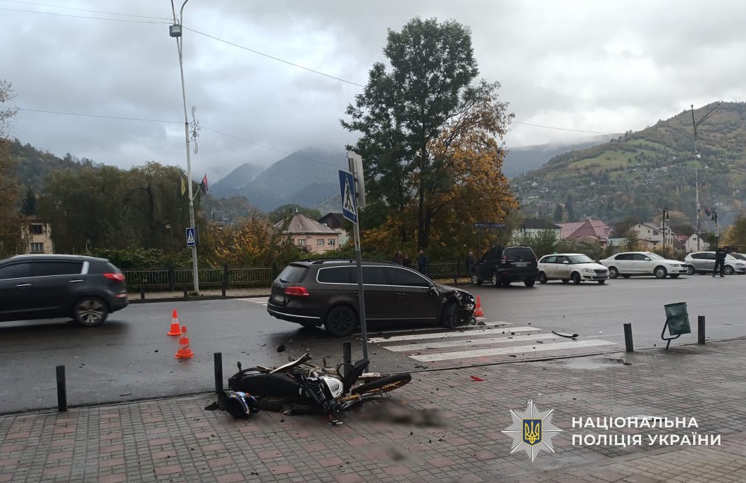 Наразі встановлено, що 21-річний житель міста Рахів разом із 15-річним пасажиром на незареєстрованому мотоциклі рухалися вулицею Миру. Чоловік не впорався з керуванням, виїхав на зустрічну смугу та допустив лобове зіткнення двоколісного з автомобілем «Volkswagen», яким керував 38-річний місцевий житель.